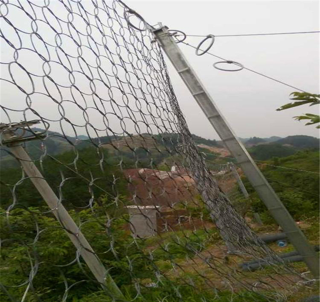 柔性邊坡防護網(wǎng)主要作用于比較危險的山坡或者是土坡地段的防護,主要是以鋼絲繩網(wǎng)為主。