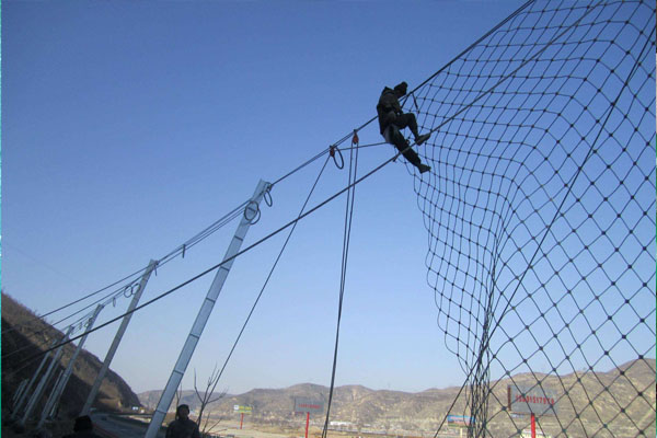 三:RXI-200型被動防護網(wǎng)是一種環(huán)狀的被動防護網(wǎng),這種防護網(wǎng)是由多股鍍鋅金屬絲編織成環(huán)狀而成。然后逐個環(huán)地連接以形成網(wǎng)狀結(jié)構(gòu),同時在其上匹配一層熱浸鍍鋅鋼絲網(wǎng)。這樣,可以更有效地攔截小石頭,以確保公路和鐵路的通暢。環(huán)的尺寸為25cm * 25cm,鋼絲網(wǎng)的孔徑為5cm * 5cm。 RXI-200被動防護網(wǎng)配備有I形鋼柱,以支撐整個RXI-200被動防護網(wǎng),通常將其安裝在山腰或山腳下。整個環(huán)網(wǎng)的抗沖擊性可以有效攔截2000-5000kg的落石。 RXI-200無源防護網(wǎng)的安裝也非常靈活方便,不受復雜地形的限制??梢愿鶕?jù)斜坡的起伏靈活地進行調(diào)整,并且安裝工作更加靈活。