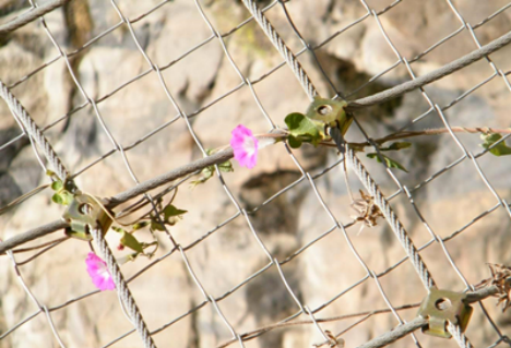 邊坡危巖防護柔性主動網:防護中通過鋼絲繩網的覆蓋來實現邊坡的加固,其開放特征可以實現對坡面天然植被和植被生長條件的很好的保護,并可實施人工綠化,實現環境保護與災害治理的有機結合;在被動防護系統中,其柔性特征充分體現了“以柔克剛”的思想,實現崩塌落石的有效攔截,達到事半功倍的效果。