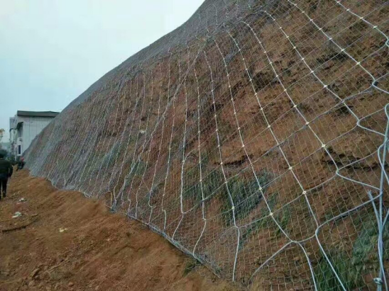 1、當邊坡發生位移的時候,一旦有暴雨來襲,即使邊坡不會塌方,可能會導致邊坡發生大面積的水土流失,泥士流失后就可能沖走大量的植被,這樣就變成了裸露的邊坡,加快邊坡的塌方,如果安裝GSP2主動防護網,因其具有一層隔離柵,隔離柵的網孔很小,暴雨來襲一般不會發生水土流失的現象,從而進一步保護邊坡,防止塌方。