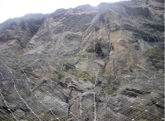大約在十幾年前從國外引進了邊坡防護網產品。自引進以來在國內得到了極大的推廣,采用邊坡防護網進行不僅降低人力成本。而且大大縮短了工期,同時也降低了大量的成本,邊坡防護網主要分為主動防護網和被動防護網。其中被動防護網類似擋土墻的防護效果,主要以攔截落石為主的防護手段。主動防護網從功能效果方面別出心裁,有其特有的優勢,主動防護網是將鋼絲繩網覆蓋在坡面并用錨固繩固定其上。當有落石滾落時,只能在有效的范圍內運動,安全有效的進行了攔截。
