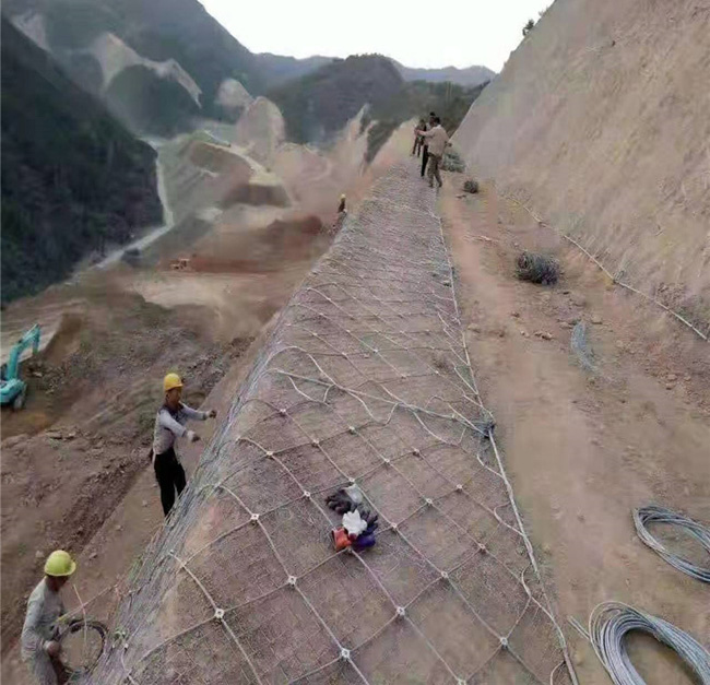 GPS2型護坡攔石網是以鋼絲繩網為主的各類柔性網覆蓋包裹在所需防護斜坡或巖石上,以限制坡面巖石土體的風化剝落或破壞以及危巖崩塌(加固作用),或將落石控制于一定范圍內運動(圍護作用)。