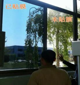 4、鋪貼:在玻璃上量好尺寸,對齊玻璃的上端,從上往下貼,如果一次性沒有對齊的話,可以重新撕下再進行鋪貼,這就是上面提到過的灑水的好處。