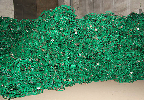 用數股鋼絲盤結成環形相互套接而形成的網,