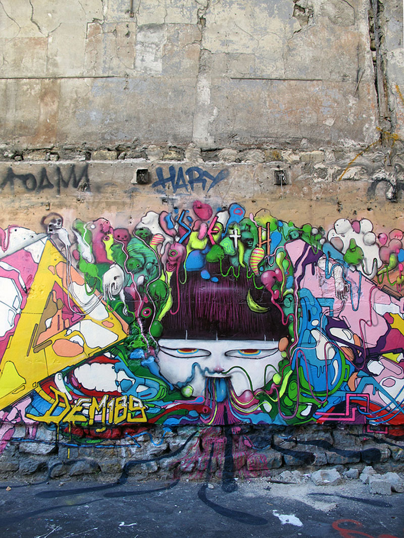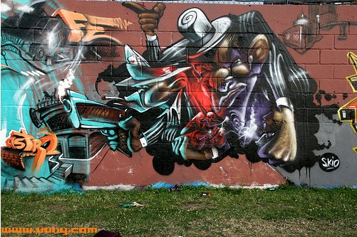 涂鴉藝術是在公共墻壁上涂寫的圖畫或文字,通常含幽默、猥褻或政治內容。在不同的地方有不同的內容。如在美國就是政治內容,而歐洲就是整幅圖畫,在日本通常是一些文字。