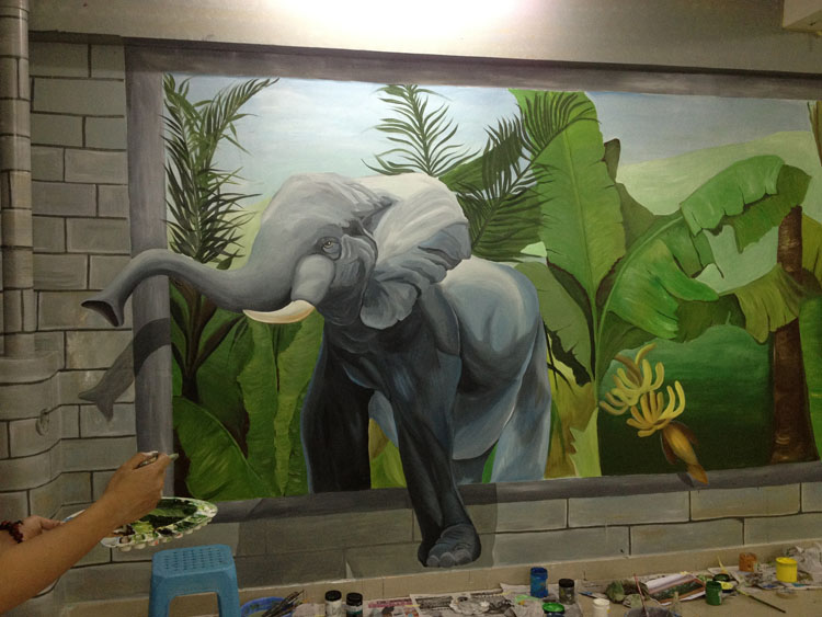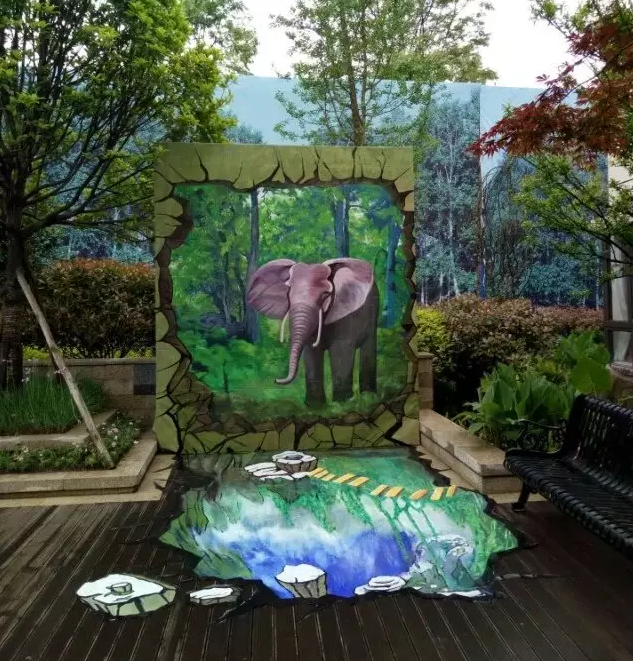 這種繪畫方式還可以讓觀畫者與畫面互動,觀者可以配合畫面內容擺出各種姿勢拍照留念。是不是很有趣味呢!