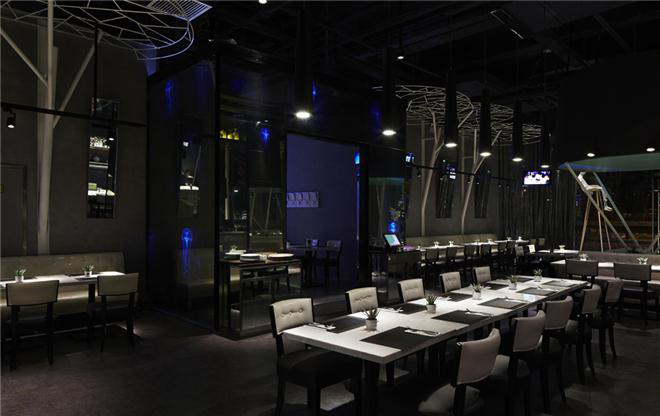 商業空間設計中采用一些喜劇化的設計亮點,巨大的臺燈,燈布下游動的的水母,水母下談著小情,說著小事,品嘗著美食的男男女女。