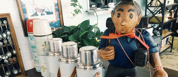 其 實還沒進門,透光大大的玻璃窗往里瞧,就能瞧見整家店滿墻滿墻的復古車牌、海報和照片。走進店里,你還會發現許多的復古皮箱、電器、首飾、玩具、唱片、酒 瓶、貼紙......它們有的掛在墻上,有的放在墻角,有的貼在餐桌旁,有的直接擺在吧臺上。不經意地看是一種體驗,如果仔細找找就有了更多的趣味。相信 仔細看上一圈,你對1950年代的美國都會有個全新的認識。