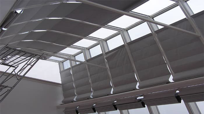 FCS電動天棚簾分為單電機折疊式天棚簾和雙電機折疊式天棚簾,其系統為水平或傾斜天窗遮陽而設計,用于垂直、水平、傾斜的玻璃窗,采用一個管狀電機或兩個軌道電機,帶動面料收放(應選用大張力遮陽面料,也可根據實際需求選用百折簾或蜂巢簾面料,來達到遮陽效果。這個造價是比較大的,價格一般就在200元一平米。