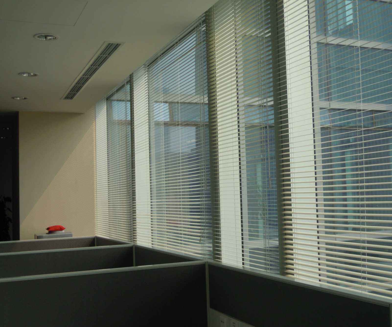電動百葉簾應用比較多一些,除了能夠把陽光和熱量大部分遮擋在建筑外面,同時還可以調節光線,保障室內光線明暗度比較統一,減少了用眼疲勞,減少電腦白屏眩光現象,提升了室內自然光線舒適度。