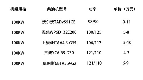 100KW:品牌較弱大約在2.2-2.4萬元,著名大品牌在4.5-五萬元上下;