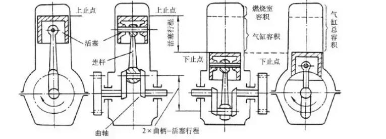 連桿是上與活塞、下與曲軸活動連接的一個零件,其作用是將活塞受到的壓力傳給曲軸。由于連桿的長度是一定的。所以當活塞運動到氣缸最下端時,它通過連桿也將曲軸推到了最下端,此時活塞的位置稱作下止點。同理,當曲軸運動到垂直方向的最高點時,它通過連桿也將活塞推到了最高點,此時活塞的位置稱為上止點?;钊谏稀⑾轮裹c間每運動一次,叫做一個“工作沖程”。