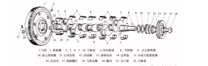 曲軸,顧名思義就是有許多彎曲的一根軸,有幾個氣缸就對應著幾個彎曲。曲軸是將活塞沿氣缸壁往復上下運動變為曲軸的旋轉運動并輸出機械能的重要部件,也是柴油機中最精密的部件之一。