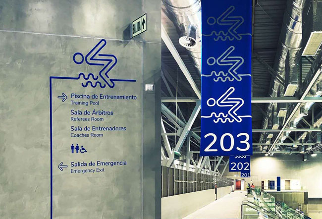 標識標牌設計制作的 游泳館室內標識膜材質清新簡