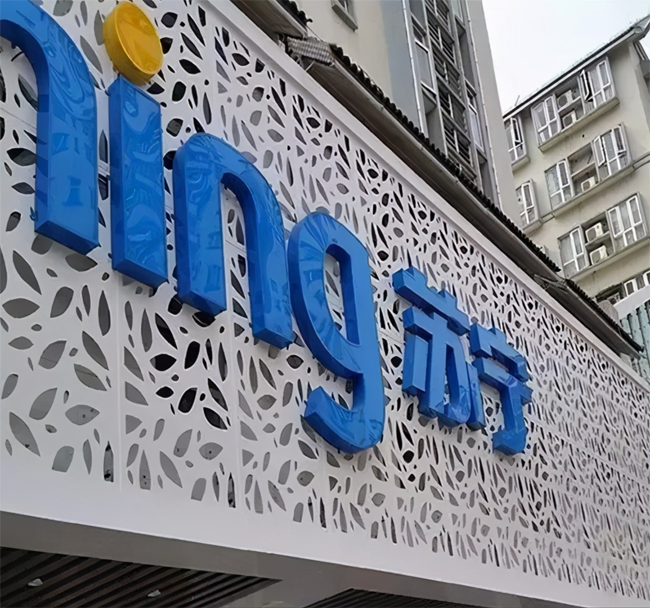 大多數門頭由底板和立體字構成,底板的材質有鋁塑板,鋼板烤漆,鋁板烤漆,生態板,銹鋼板,鐵絲網,鋁單板,異型切割金屬板,三維扣板,條形扣板等,當然還有經過各種特殊工藝處理的底板,立體字則根據底板材質,選用合適的形式,或者背發光,或者內發光,還有更多的發光字類型。