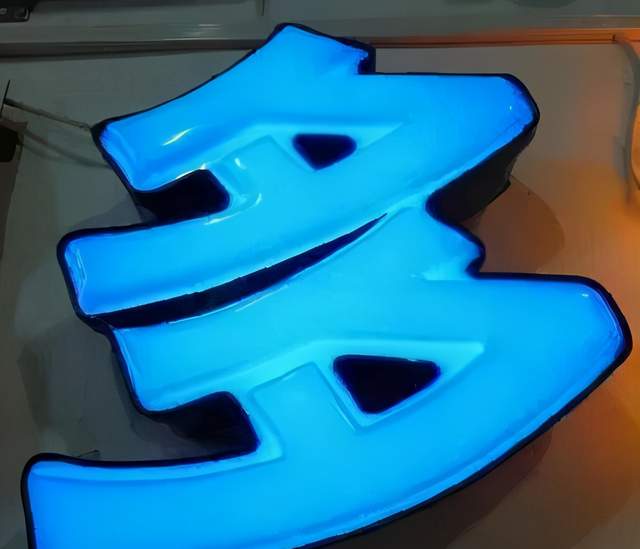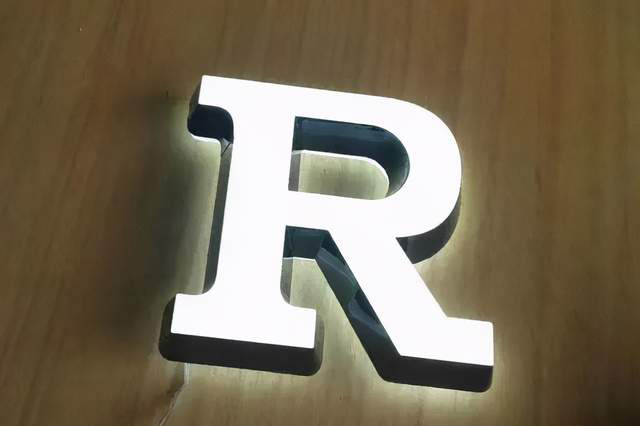 正面及側面成直角,正面發光。一般用3mm透光亞克力板做正面,鐵皮烤漆圍邊及做底,制作工藝和方法與通體發光字基本一致。