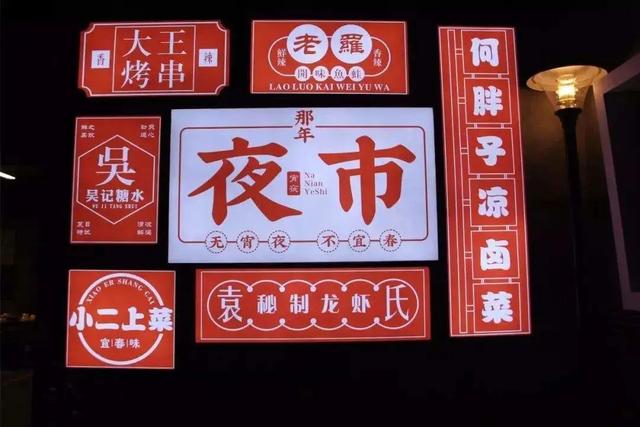 招牌堆在一起很有夜市夜晚的感覺,視覺效果好