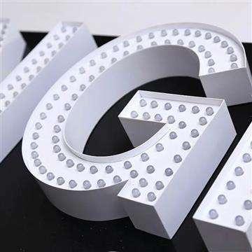 吸塑字是面板由亞克力板通過壓塑、鐵皮/不銹鋼底盒和膠邊/內(nèi)套邊組成,特點(diǎn)是表面亞克力壓塑成型,所以面板明顯立體結(jié)構(gòu),發(fā)光立體、色彩鮮艷。