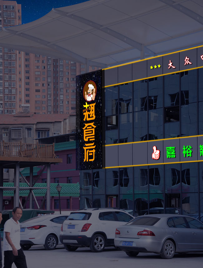 店招通常都是采用多種色彩組合而成,所以色彩的搭配一定要恰當,色調需要與餐飲店門面的色調相匹配,可以表現主題為目的來選擇色調或與餐飲店的主色調相一致。