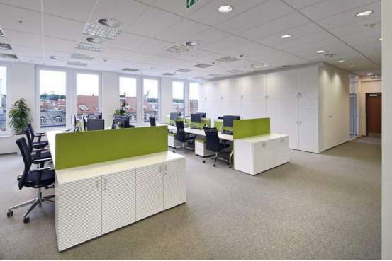 石膏板吊頂通常較為規整,整體感覺更為莊重。這是一種常見的裝修形式。石膏板吊頂使辦公室成為一個整體,頂面也可以錯落,借助照明的裝飾,它創建了一個相對簡單大方的辦公室裝修。該效果通常適用于國有企業,大型公司或工業公司,并且總體效果更為莊重嚴肅。