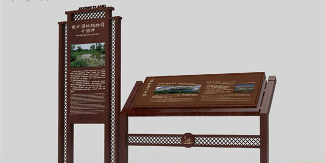 景區(qū)標(biāo)識系統(tǒng)整體運(yùn)用精湛工藝結(jié)合傳統(tǒng)裝飾圖案進(jìn)行裝飾,加深對游客的印象。