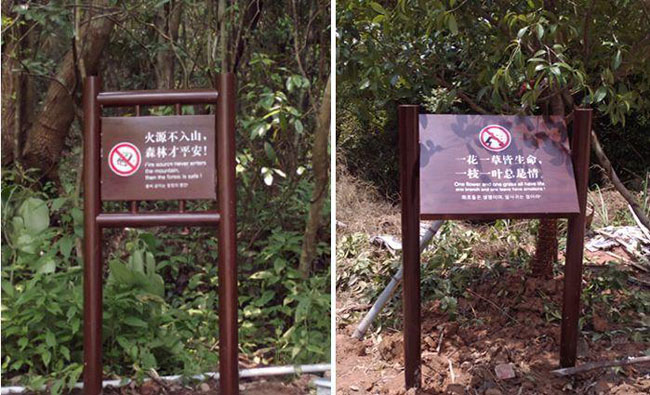 4、景區安全標識視覺效果不佳。旅游景區安全標識系統是給游客來進行觀看的,作為景區管理者設定的標識應引領游客與大自然進行交流,因此,需要從游客自身的角度出發,為游客提供人性化的服務。游客對景區安全標識尚未形成印象,對安全標識系統識別度低。這說明景區安全標識設計要著重抓住“人本特性”,整體造型、安裝位置、高度尺度等不僅僅滿足景區自身的引導和告示需求,更要滿足游客在視覺上的愉悅度、可用性、易看性等需求,同時顧及到各個不同年齡層的游客,增加景區的體驗性。