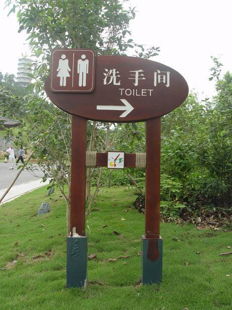 道路導向指示牌。道路導向指示牌是以文字、圖案和規范符號向游客傳遞信息,從而達到管理、引導人流和交通的目的。準確地設置道路交通標識,有利于疏導交通,方便游客游覽參觀。