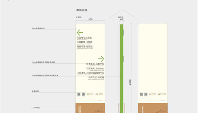 合理的空間規(guī)劃:全景標(biāo)識(shí)標(biāo)牌通常設(shè)定在出入口;宣傳類標(biāo)識(shí)標(biāo)牌應(yīng)設(shè)置在旅游區(qū)及各景點(diǎn)的出入口、歇息點(diǎn)及生態(tài)系統(tǒng)內(nèi);指路標(biāo)識(shí)牌通常遍布景點(diǎn)的路口處;景區(qū)標(biāo)識(shí)牌通常放置景點(diǎn)入口或其主導(dǎo)區(qū)域。要規(guī)劃設(shè)計(jì),確定各標(biāo)識(shí)牌所放置的位址和總數(shù)、規(guī)格等等,在確定的同時(shí)要根據(jù)人體工程學(xué)和建筑學(xué)、美學(xué),便于標(biāo)識(shí)牌能發(fā)揮到其本身功能。