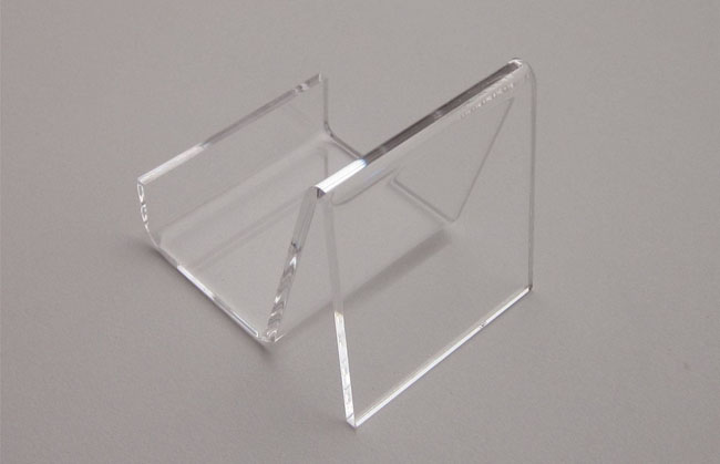 局部熱彎是亞克力展示架加工中比較常見的一種,一般是將直板的亞克力熱彎出一個弧度,比如說U形,半圓或者弧度等,也有一些比較麻煩的局部熱彎,比如將亞克力熱彎成直角,但是熱彎處為光滑弧形,這種工藝是在這條熱彎處撕掉保護膜,用高溫的模具棒將需熱彎的亞克力邊緣加熱,然后利用外力彎成直角就可以了,這樣出來的亞克力制品邊緣就是光滑的弧形直角了。