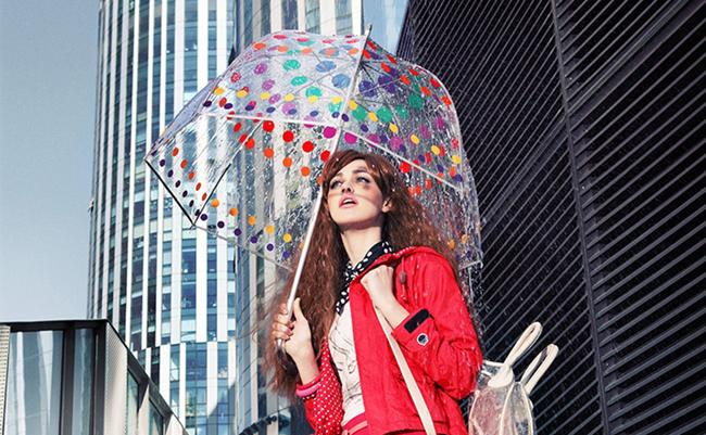 今天給大家介紹一下近年來流行的透明雨傘,透明雨傘就是遮布透明的雨傘。,其傘面是用POE或者PVC塑料布為面料的,而塑料布,它由塑料層與網狀基層熱壓而成。它的種類有:聚氯乙烯(PVC)、聚氨酯(TPU)、聚丙烯(PP)、聚乙烯(PE):聚乙烯又有分高密度聚乙烯(HDPE)、低密度聚乙烯(LDPE)等。而普通的透明雨傘一般使用聚氯乙烯(PVC)塑料布作為制作材料。