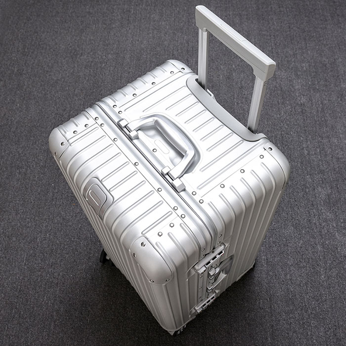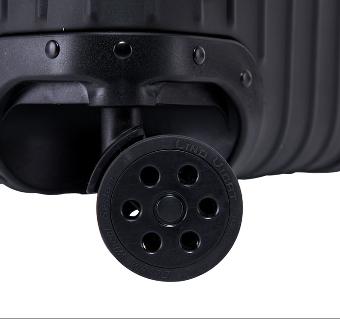 高強(qiáng)度拉桿、鋁合金實(shí)心包角、配置海關(guān)鎖、回彈舒適把手、雙排靜音萬(wàn)向輪。