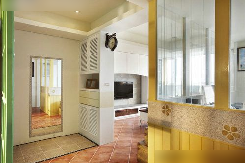 用白色的百葉窗搭配鞋柜,既起到透氣的作用,也讓鞋柜變得美觀。因為美式風(fēng)格有點類似鄉(xiāng)村風(fēng)格,地磚、原白色的抽屜和玄關(guān)造型的鞋柜突出美式風(fēng)格的重要特色。