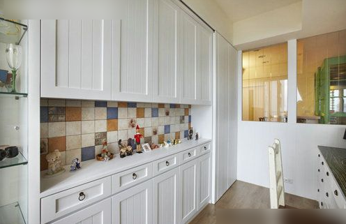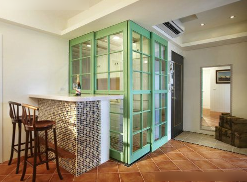 馬塞克裝飾的餐臺,充滿了繽紛活力的色彩,廚房用美式格子線條的玻璃設(shè)計,充滿了大自然的氣息,又讓油煙很好的與客廳相隔,不會影響到室內(nèi)的環(huán)境。
