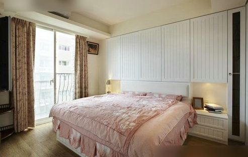 主臥室沒有用過多的家具裝飾,白色的衣柜內(nèi)藏足夠的收納空間,既美觀又實用。