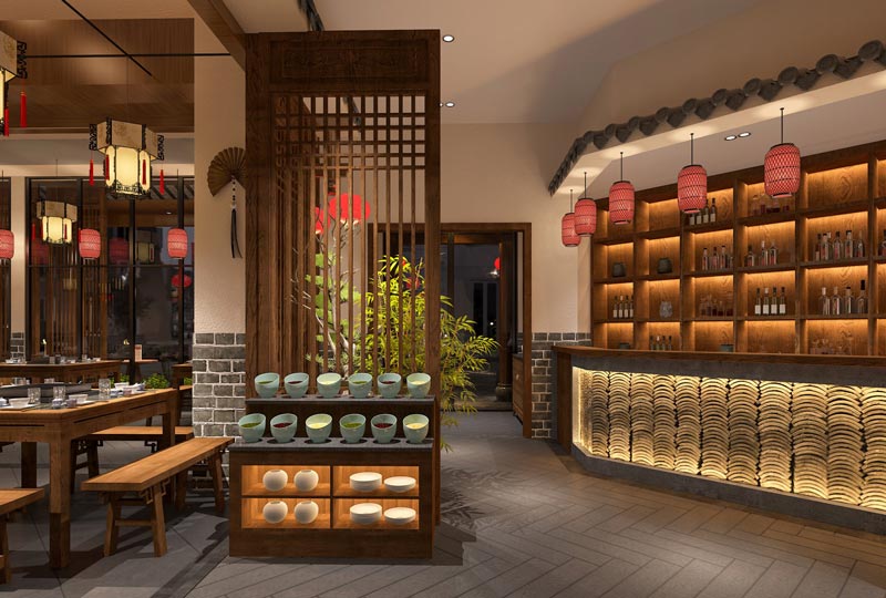 傳統火鍋店設計裝修,要符合火鍋店的經營特色,具有一定的吸引力,提取傳統火鍋店中的精華,作為火鍋店設計的元素之一,從而打造出一個具有傳統特色元素,又能被現代年輕消費群體喜愛的火鍋店就餐空間。
