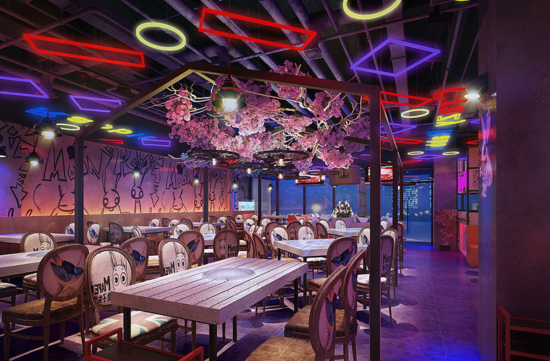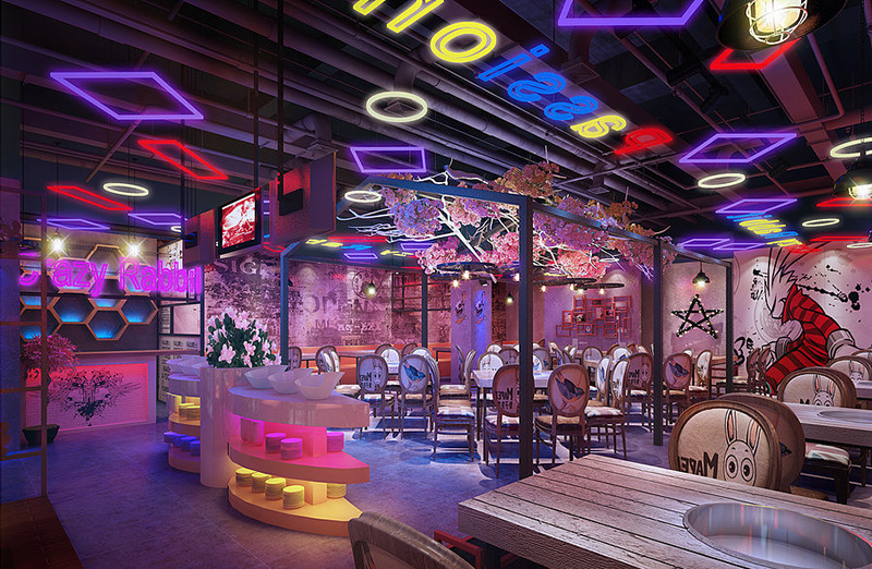 作為一個火鍋店,最重要的就是特色,這個火鍋店設計案例根據(jù)自身兔子火鍋的特點,大量采用兔子相關的元素。色彩沖擊力強,給顧客留下深刻的印象。