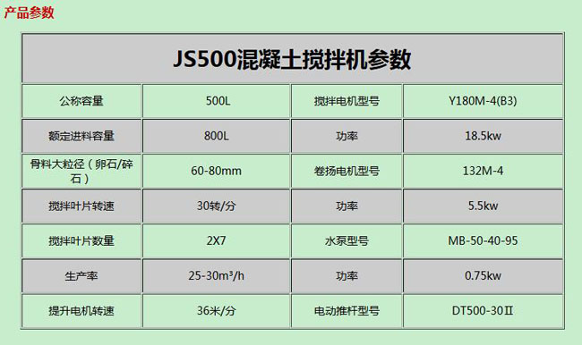 JS500混凝土攪拌機產(chǎn)品參數(shù)JS500混凝土攪拌機產(chǎn)品參