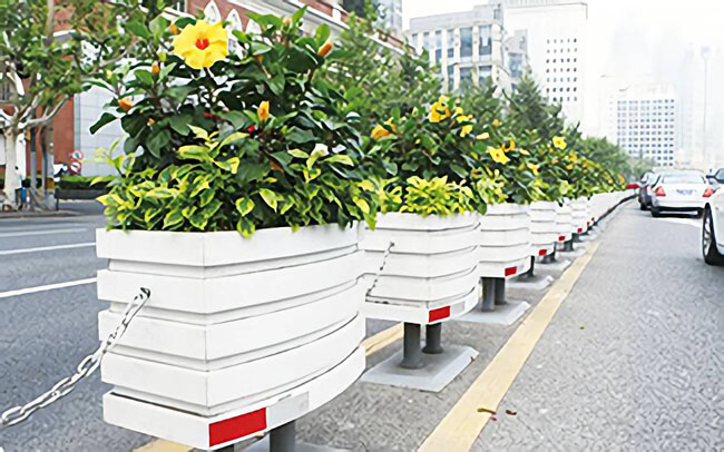 道路花箱就是放置在道路中間和道路兩旁人行道起到隔離交通,防止車道變道亂行,規范交通秩序的作用,pvc道路花箱,具有護欄功能的花箱,極大地避免了交通意外事故的發生,還提高了城市景觀。城市綠化的覆蓋率,改善了城市道路環境空氣質量。道路花箱的使用,加快了城市生態文明建設的節奏,在如今城市綠化不足,平地土地面積資源過量占用。改變平地綠化種植方式和道路護欄傳統思維,通過建設道路花箱,涵蓋了綠化種植與護欄的作用,一舉兩得。