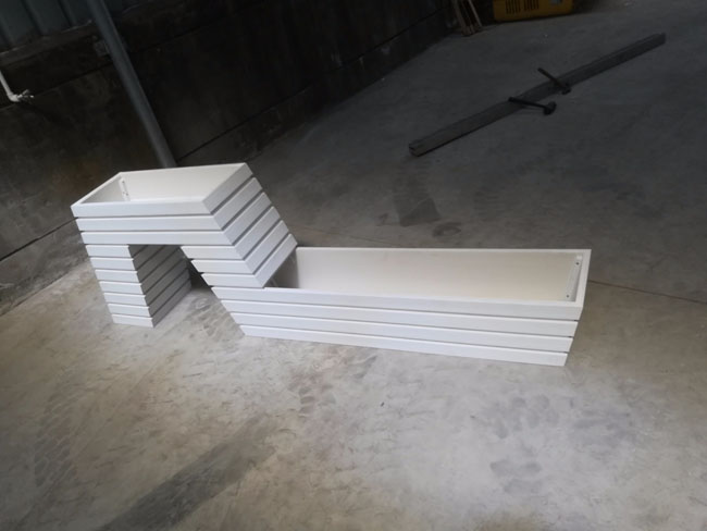 別的PVC板材還具有阻燃性,能自熄不虞火災,能夠安全使用;都有防潮、防霉、不吸水的功能,并且防震效果好。PVC發泡板不僅質地輕,儲運、施工便利。并且可像木材相同進行鉆、鋸、釘、刨、粘等方法加工。PVC發泡板能夠用于熱成型,加熱彎曲及折疊加工等。PVC發泡板其外表潤滑,亦能夠打印。而這些杰出的原料表現又極好的體現在花箱的制造和用途上,再加上內部結構的規劃和改進上,又有了植物內在需要的增加交融。