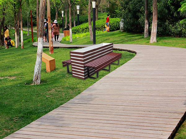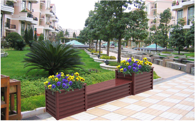 組合式仿木紋鋁合金花箱,擺在道路兩旁,即可用于裝飾、也可供行人休息