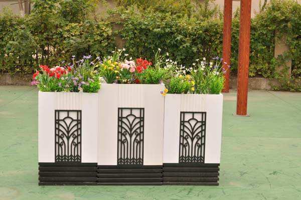 其次鋁合金花箱大部分的制作工藝是采用德國熱轉印技術加工成的。其是真正意義的環保材料,由于本身并不會向周圍環境散發危害人類健康的揮發物。花箱在視覺上,線條流暢,外型優美。增添了城市色彩,尤其是對老人家,可以利用花箱來種植一些花草,有利于身心的健康,同時也為我們的城市增加了綠色,讓城市變得更加靈動,讓我們的生活變得更加美好更加和諧!