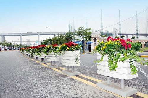 在道路中央隔離帶設(shè)置道路護欄花箱,這樣做的目的不僅是為了綠化,也是讓駕駛者按照規(guī)定車道行駛,提高安全性。其實大家可以發(fā)現(xiàn)不同城市有著不同的花草樹種,綠化的方式也不盡相同。