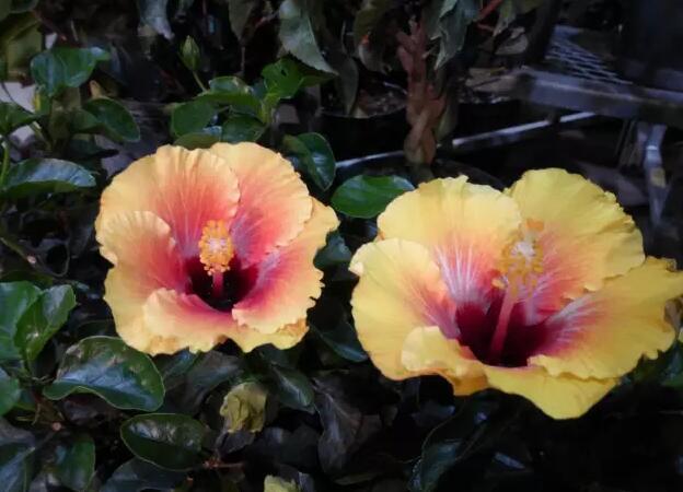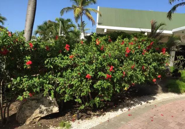 還有一種黃色花瓣,花朵較小,但有深色花心的品種,叫做黃槿”,它們都是長在海邊的,在南亞可以隨處看到,非常粗生,完全不怕土壤偏堿,也不怕強風吹。非常耐生長,不過花朵很快凋謝,這花也是只有一天壽命,但在傍晚要謝時,會轉為橙紅色才凋謝。