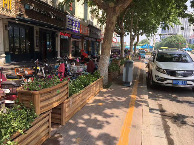 2、制作成型后,就是用花箱進(jìn)行種植,花箱內(nèi)先進(jìn)行玻璃鋼防腐處理,這樣水土不會(huì)與實(shí)木和金屬部分直接接觸而產(chǎn)生腐蝕,而且用玻璃鋼把數(shù)條單根的木板膠結(jié)成一個(gè)整體。還可以選擇在花盆內(nèi)單獨(dú)訂做玻璃鋼容器來盛放泥土以便種植。這樣的質(zhì)量會(huì)更好。但不可選用白鐵皮容器,因?yàn)楹苋菀妆讳P蝕。