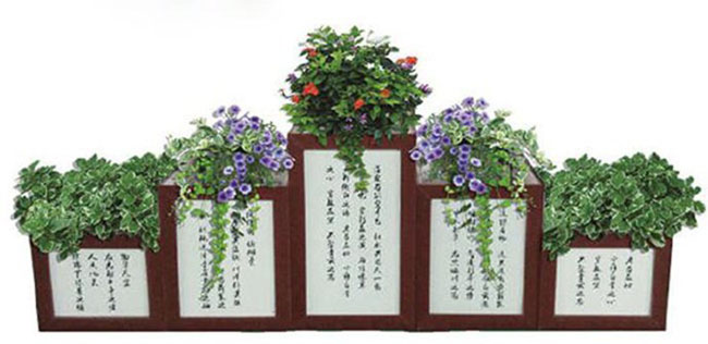 其次我們看到的藝術花箱是宮燈藝術花箱,這種藝術花箱不同于其他藝術花箱的是其組合形式多樣,可以用于道路燈桿的綠化和美化,宮燈藝術花箱的藝術元素設計來源于中國古典的宮燈藝術,設計的燈窗形式加古典紅黃兩色搭配,將古典藝術與現代工藝相結合。發揚中華文化的同時也在為城市立體綠化提供更多更好的藝術氛圍。