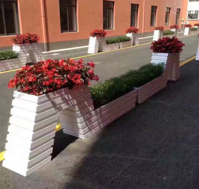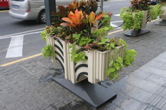 道路花箱做為機動車與人行道的分界線,不但可以起到安全作用,對道路的美化及城市的市容也起到很大的修飾作用,道路花箱讓踩不出印記的板油路也變得有生機起來。
