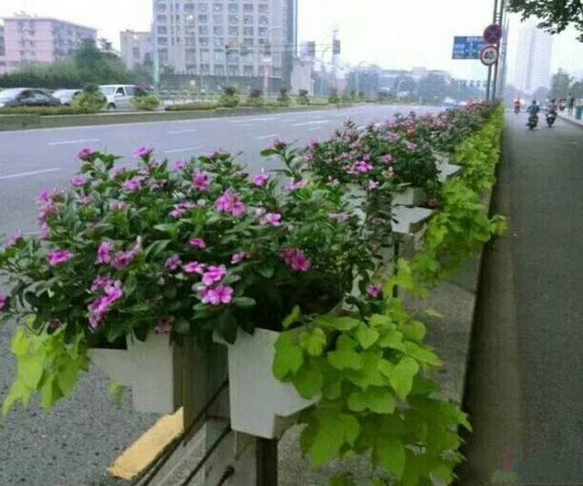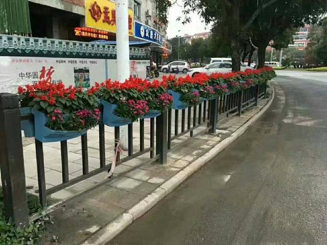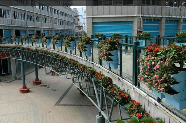 pp塑料花盆可以懸掛在人行天橋,護欄,墻體,河道邊等地方,配上小灌木,立體感很好,下面來欣賞它的美吧!