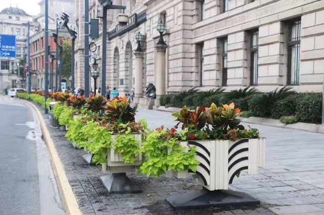 由于城市化進程的不斷加快,人們對城市綠化的要求越來越高,配置一定規模的公園、綠地和街頭綠化景觀成為城市綠化建設較迫切的需要,然而城市建筑密度和容積率越來越高,綠化用地很難保證。為提高城市綠化率,開發城市綠化形式的多樣性,解決城市建筑密度和容積率越來越高與城市綠化建設迫切需要之問的矛屑,結合綠化實踐工作,推出了移動式綠化-花箱的應用,如綠化帶花箱、隔離帶花箱、木塑花箱、pvc花箱等等形式,其簡便、靈活、成景快及適應性強的優點在城市園林綠化中越來越得到人們的重視和認可。