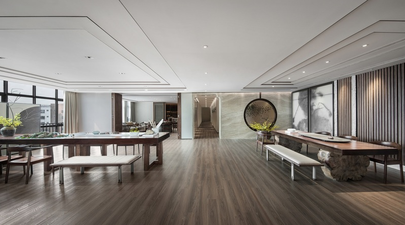 整體設計營造一種返璞歸真的自然基調。平面布局手法如作詩文,前后呼應,疏密易為,情景雅致,方稱佳構。 入玄關步經過道、藝術走廊區。見-生活藝術作品,陶瓷裝置藝術品為承載,融入其中,成為眼前畫面,場所靈魂得以賦形,成為空間的化身,從而也達成眼前的景觀。聞香區與斗藝區之間形成自個空間使用,走出界線,得以放松。使藝術與人文的交流得以融合與升華。花藝、陶瓷、造物等帶出本質的東西成為景,意合才能達成“合宜”“盡致”含蓄精神里。同時與雅聚廳、富貴廳與天籟之音區等空間之間轉折變化,獨立與敞開之間使用,富有風趣。之間的組合處理得意趣無窮。 在藝術體驗食物,在食物享受藝術無窮。使得這一空間成為一種富有藝術人文精神性的場所。取東方禮序之意,萃集現代靈動、尊貴、優雅精致及端莊沉穩于一體。建造“藝術與文化”聚點。