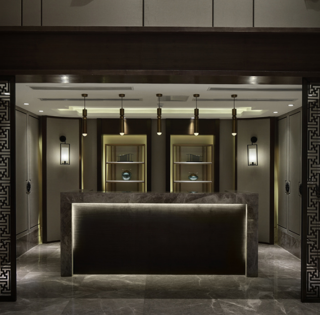 在和甲方充分溝通后,我們針對中年客群和項目原有的空間特性,采用了新東方元素的設計手法,對空間賦予一定的文化氣息。安寧靜謐的空間氛圍,讓每個客人到來后可以放松愜意的享受服務。